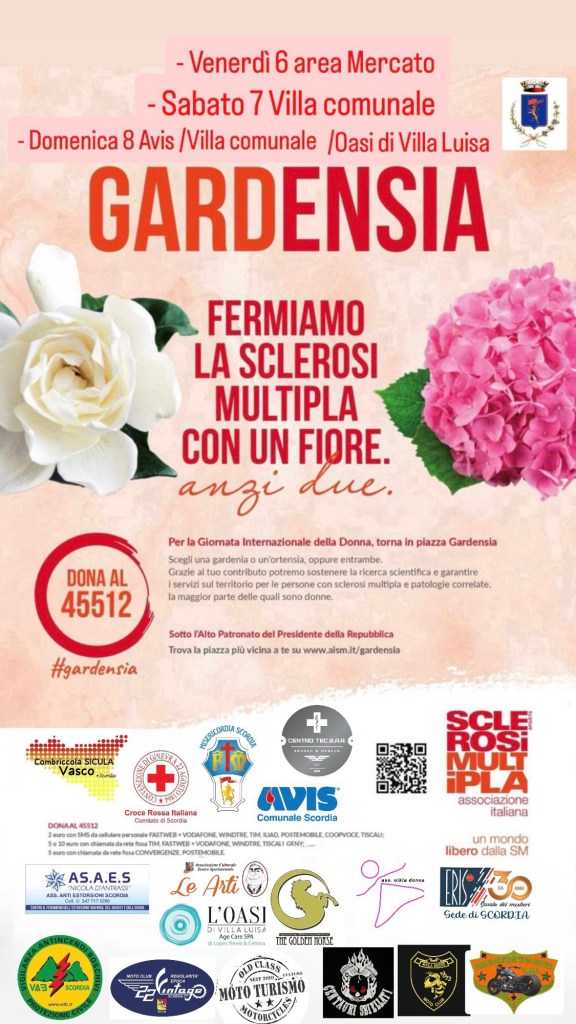 A Scordia la solidarietà sboccia in primavera. Il 6, 7 e 8 marzo la città si trasformerà in un piccolo giardino di speranza grazie all’iniziativa “Gardensia”, promossa dall’Associazione Italiana Sclerosi Multipla e realizzata sul territorio di Scordia Grazie all’organizzazione della Combriccola Sicula Vasco.